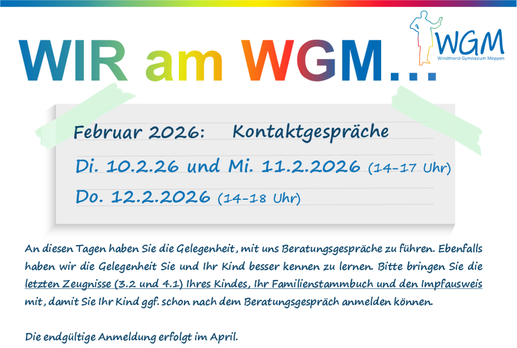 - 17.01.2026, 10 bis 13Uhr: „Wir am WGM“ – Tag der offenen Tür