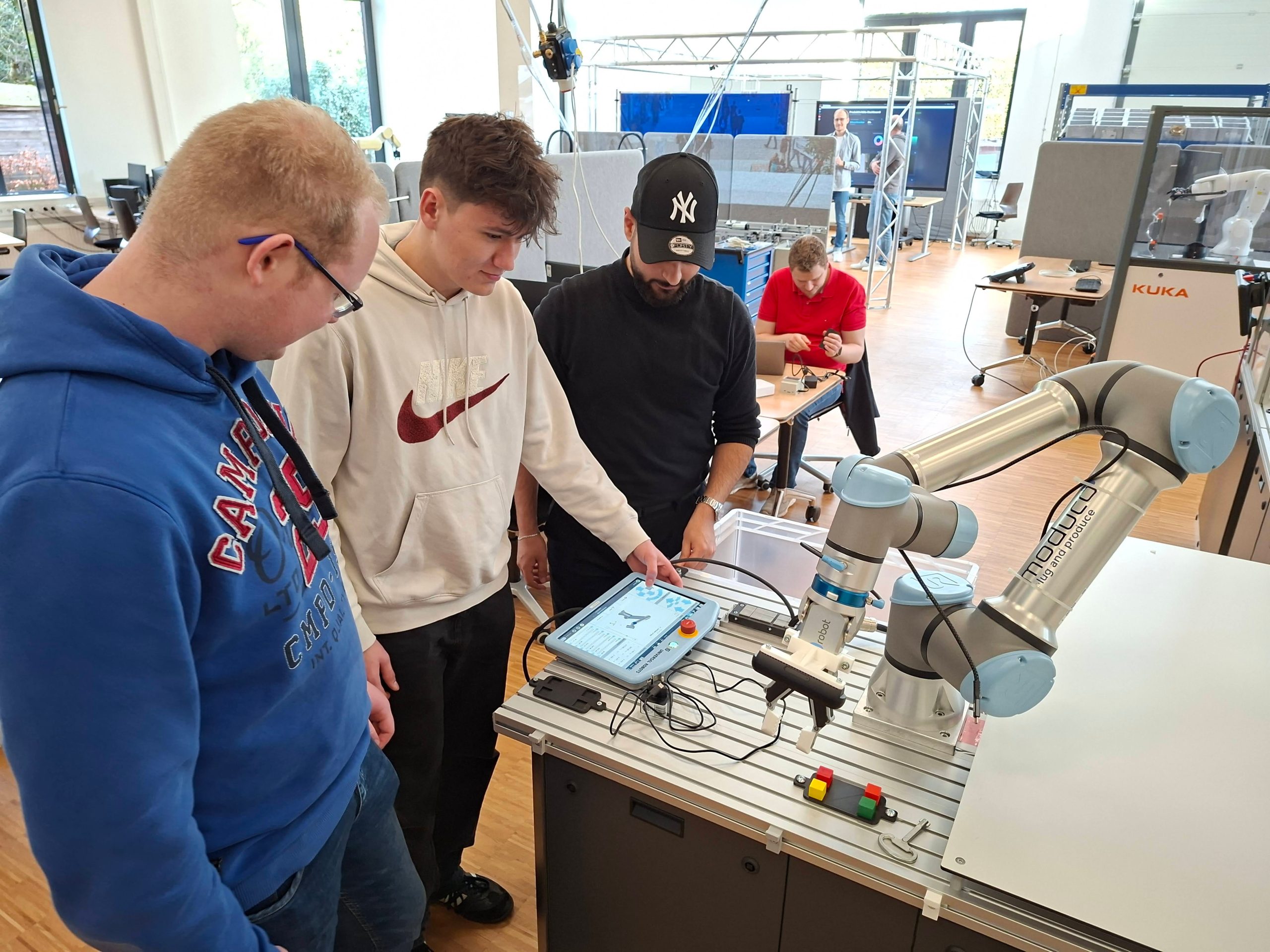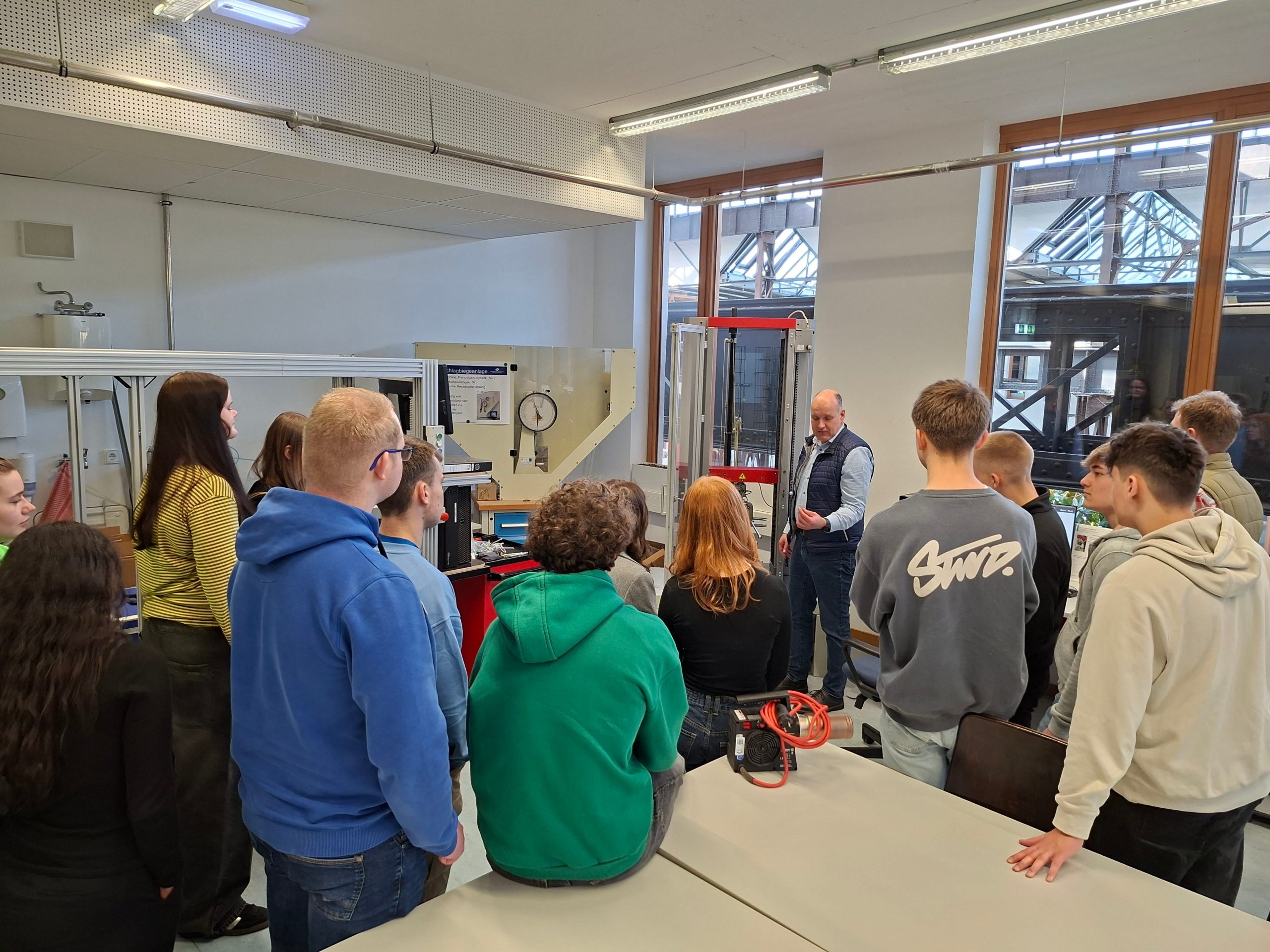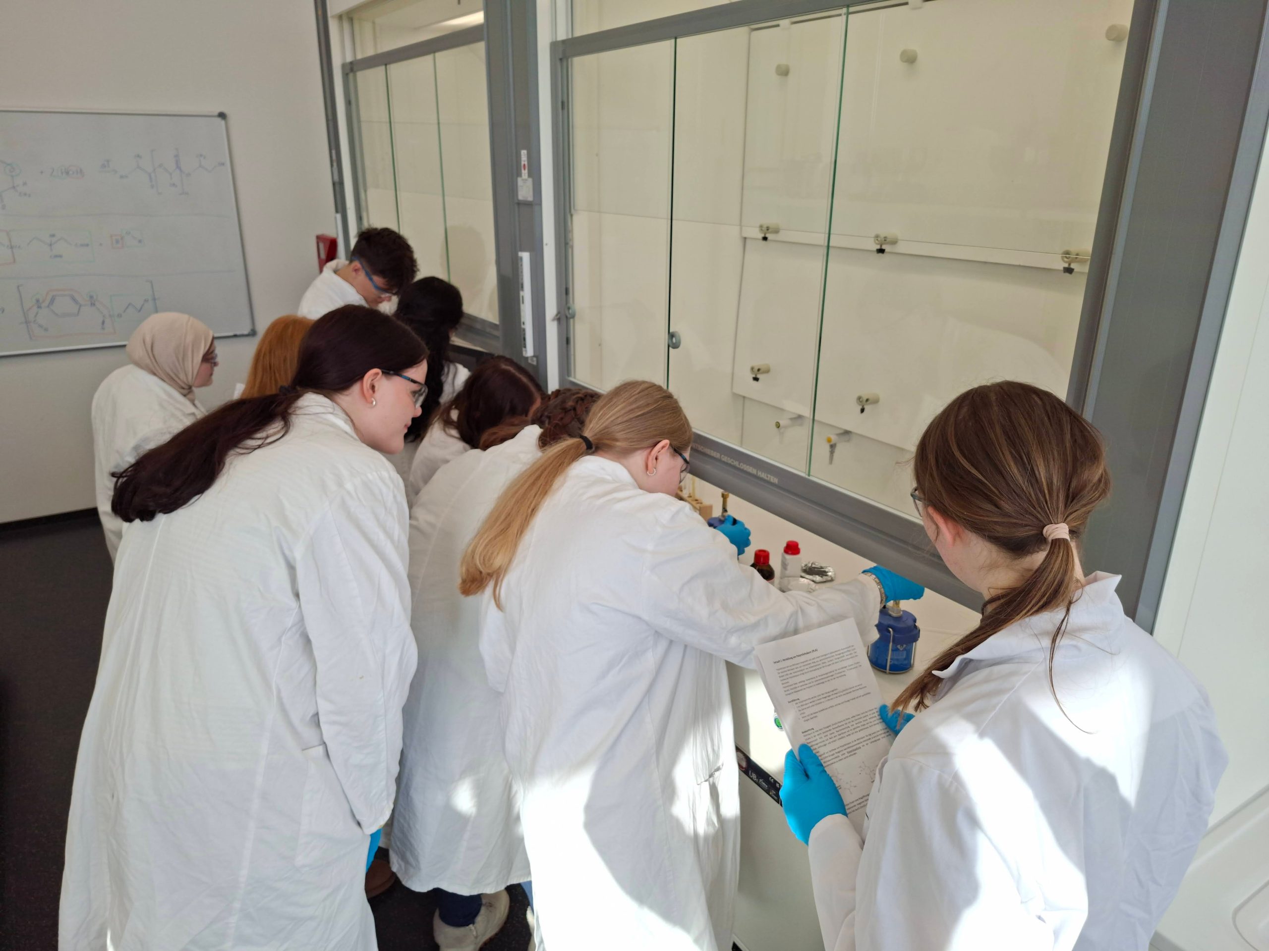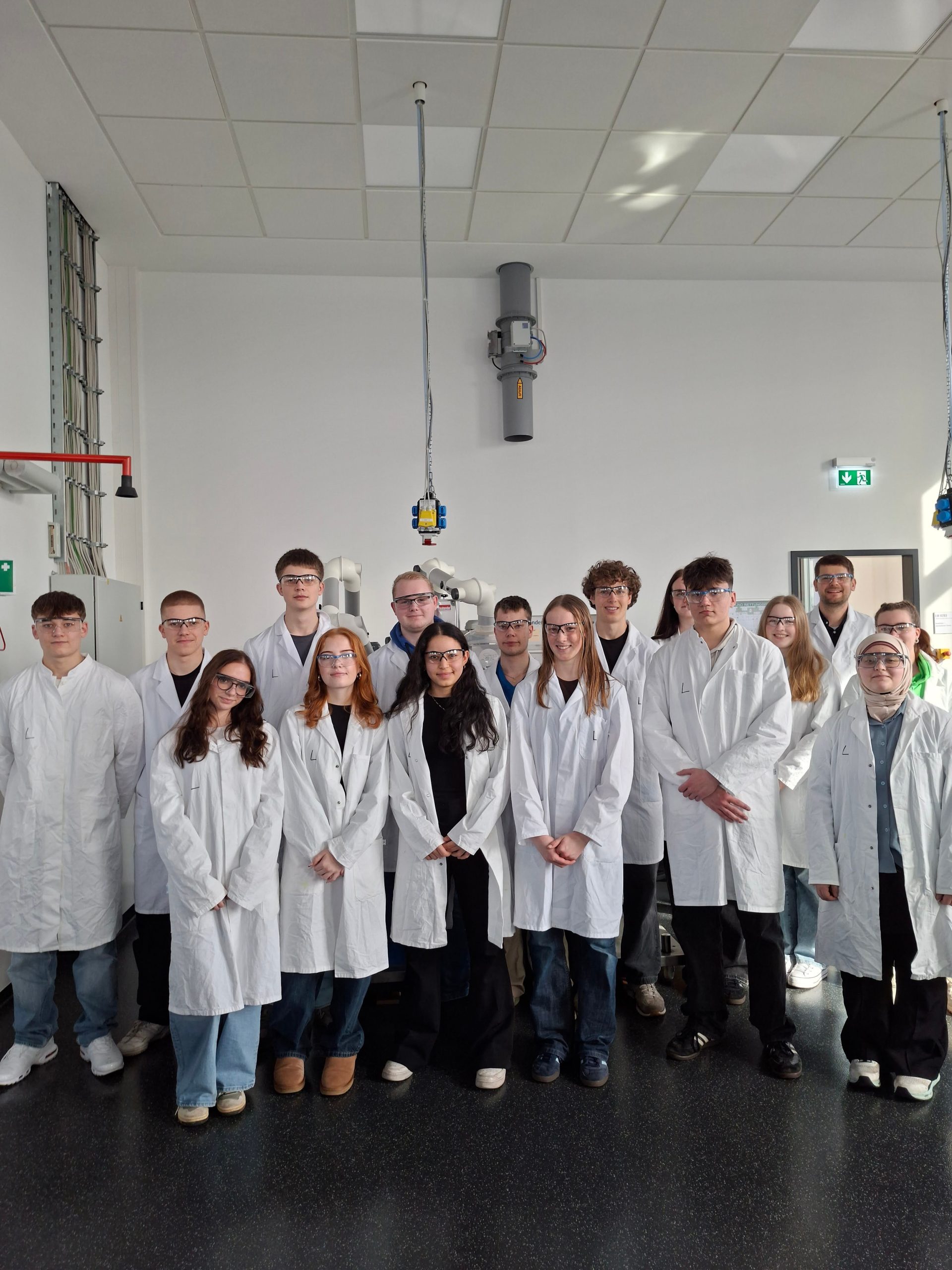Die Referentinnen und Referenten boten ein abwechslungsreiches, inspirierendes und sehr lehrreiches Programm. Im Chemielabor wurden Kunststoffe synthetisiert und analysiert, im Werkstofflabor Materialkennwerte bestimmt und im Bereich Robotik mit einem kollaborierenden Roboter sowie einem Produktivitäts-Dashboard gearbeitet.
