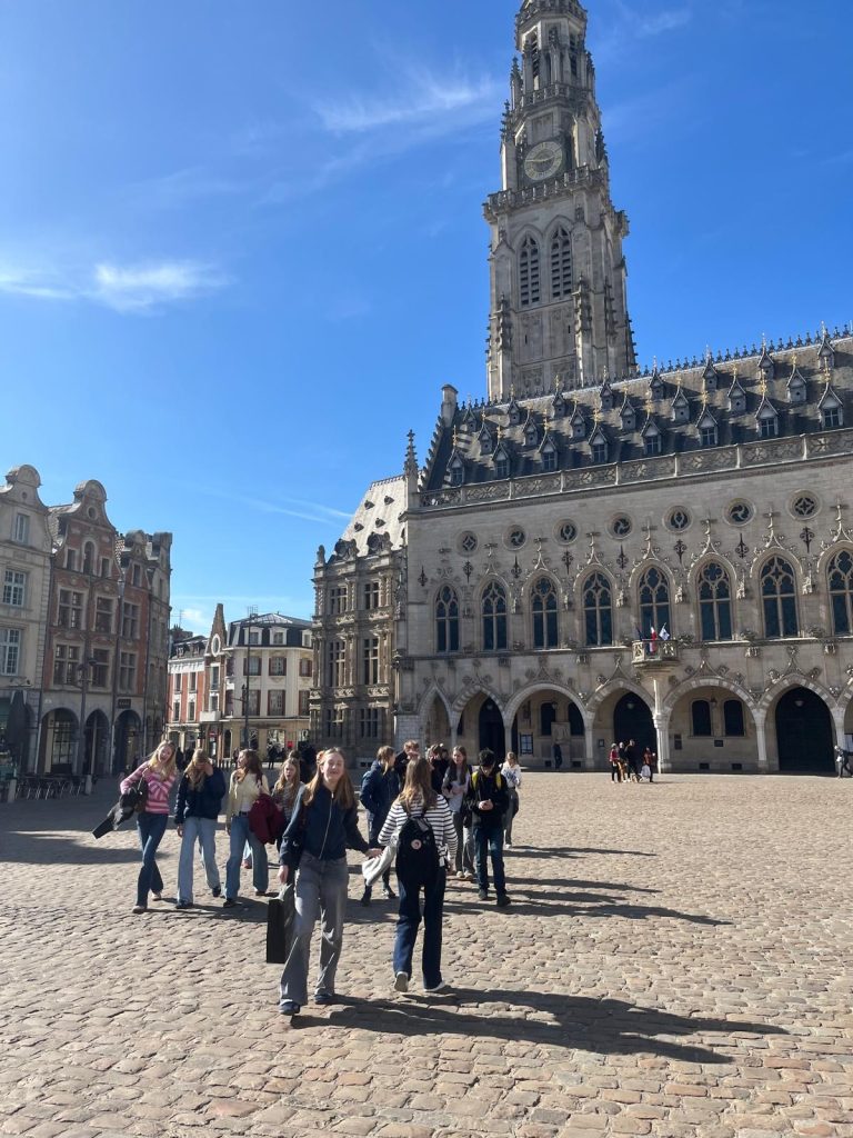 Am Mittwoch, den 11.03.2026 haben wir 17 Schülerinnen und Schüler uns morgens am Busbahnhof eingefunden, um gemeinsam unseren Rückbesuch zu unseren französischen Austauschpartner nach Marchiennes in Nordfrankreich anzutreten. Unsere Fahrt führte uns durch die Niederlande und schließlich durch Belgien, hier und da gab es einen kurzen Stopp, bis wir die Grenze zu Frankreich passierten. Gegen 16 Uhr trafen wir dann in Marchiennes ein, wo uns die Schulleitung bei einem kleinen Empfang willkommen hieß. Anschließend sind wir mit unseren Austauschpartner in unsere Gastfamilien gefahren.