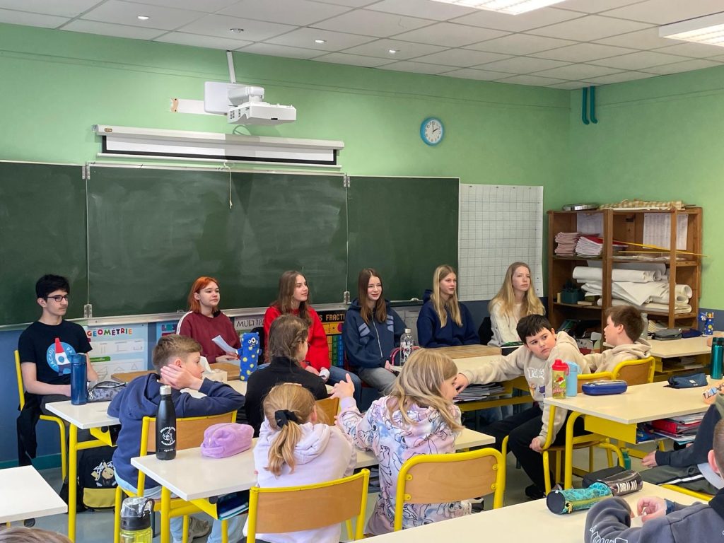 Nach der Mittagspause sind wir zu sechst mit Herrn Couche und Frau Borken zu einer nahegelegenen Grundschule gegangen, um dort Werbung für die deutsche Sprache zu machen. Die Kinder haben uns nett mit einem deutschen Lied über Zahlen und Buchstaben empfangen. Wir haben uns vorgestellt und danach die Fragen der Kinder beantwortet. Sie waren sehr neugierig und wollten vieles über die Schule in Deutschland, unsere Feiertage und auch über die Wahl der Fremdsprache erfahren. Anschließend haben wir mit den Kindern in Gruppen noch verschiedene Spiele zu Zahlen und Farben gespielt, die die Grundschüler zuvor eingeübt hatten. Als Dank haben sie uns dann zu ihrem „goûter“ eingeladen, einem traditionellen französischen Nachmittagssnack. Délicieux!